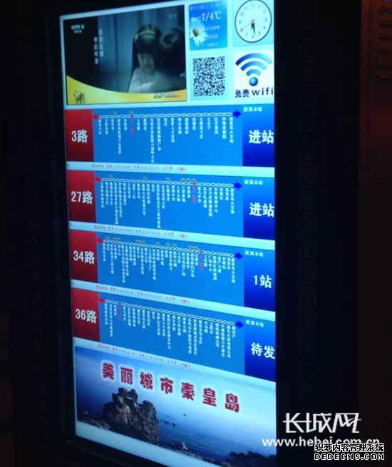 電子智能站牌亮相港城。張瀟月 攝 長城網(wǎng)秦皇島1月15日電(張瀟月 記者 李興雙)近日,秦皇島市公交站牌給市民們帶來了一份小驚喜,全新的電子智能站牌,吸引了眾多市民的目光。 13日晚,記者乘坐公交車來到市第一醫(yī)院,下車時發(fā)現(xiàn)全新的電子智能站牌上顯示了時間、天氣、電視節(jié)目等內(nèi)容以及公交車的行進情況,同時還提供免費的Wi-Fi連接。記者隨后從相關(guān)部門了解到,目前秦皇島市文化路上有四處站點安裝了此類型電子站牌,均處于調(diào)試階段。 今日記者再次走訪發(fā)現(xiàn),電子智能站牌上清晰地顯示出運營車輛距離車站還有幾站、大概需要等候多長時間等信息,許多等待公交車的市民對這種新型公交站牌贊不絕口。電子公交站牌通過電子屏幕顯示公交車運行信息,將公交信息網(wǎng)絡(luò)延伸到公交站臺,更加方便了市民公交出行。