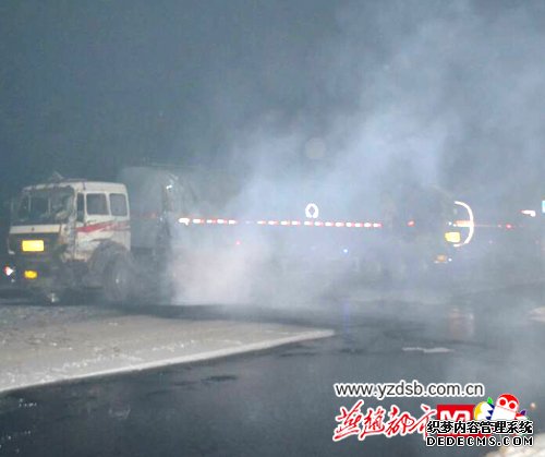 隨后記者從秦市消防支隊昌黎縣中隊得知,事發(fā)時間為當日凌晨4時43分,凌晨5時許,消防官兵們接報警后出動兩部消防車,到場后發(fā)現(xiàn),發(fā)生事故的是一輛重型油罐車與一輛半掛車,其中油罐車載有30噸炭黑油,兩車在會車時發(fā)生刮蹭,事故造成罐車的罐體左前側(cè)裂有20公分左右的口子,造成炭黑油泄漏。 官兵們經(jīng)與罐車司機了解得知,罐內(nèi)油料溫度約八九十度,炭黑油流出后直接凝固,不用堵漏,可采取倒罐方式將剩余炭黑油倒出。為了防止意外引發(fā)油料起火,官兵們立即對現(xiàn)場進行警戒,同時接出水帶水槍待命。凌晨6時05分,倒罐車到場,官兵在一旁進行監(jiān)護,由罐車司機進行倒罐。7時20分許,倒罐結(jié)束。據(jù)了解,此次事故是由于當天路上結(jié)冰,早上又下起小雪,拐彎時地面打滑才導致的這起事故。