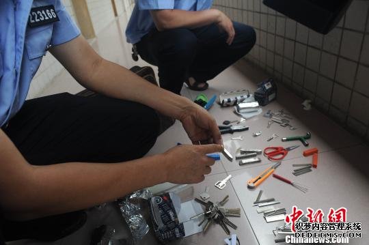中新網(wǎng)茂名5月14日電 (梁盛 黃海櫻)化州市警方14日向媒體通報(bào)稱,經(jīng)過一個(gè)多月的循線偵查,警方打掉一個(gè)流竄“兩廣”作案的特大入室盜竊團(tuán)伙,擒獲3疑犯,偵破系列案件10多宗,其中曾先后“五進(jìn)宮”的主犯陳某堅(jiān)開鎖技術(shù)堪比開鎖專家。