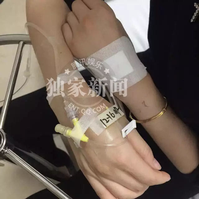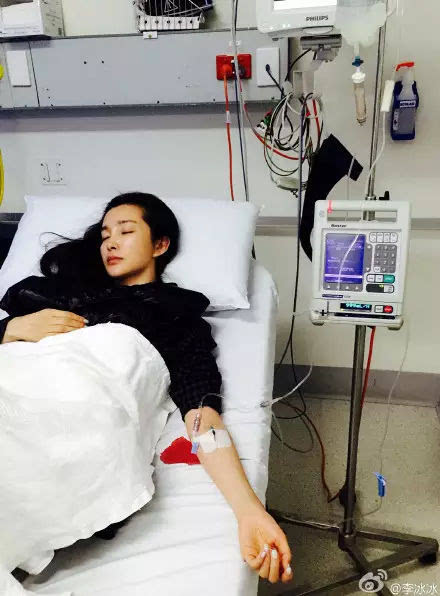 照片中,李冰冰躺在床上面容憔悴,已經(jīng)燒至39.7度,左手還插著輸液管,白色的床單上留有明顯的血跡。手上已經(jīng)出現(xiàn)淤青,看上去很虛弱,總之,心疼的小編是不要不要的。