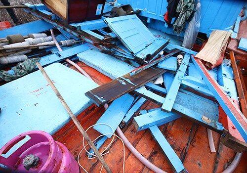 被外國船只沖撞后的越南漁船