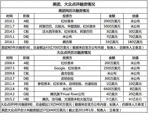 此外,美團也一直在去阿里化,價值兄此前就明確指出過這一點。以王興的強勢來分析,美團其實并不希望受制于任何一方,但早期為了將團購模式延續(xù),引入阿里屬于不得已為之,而阿里也在創(chuàng)建口碑尋求突破,雙方彼此心知肚明。當彼此認為無法親密合作,自然分道揚鑣是最好的方式。阿里與美團,與其說是此前的彼此認同,不如說是模式發(fā)展初期彼此目標相似,相互攜手的自由戀愛更為恰當。兩位個性要強的人在熱戀時候可以彼此遷就,甚至認為真愛就在眼前。但是當各種矛盾隨著現(xiàn)實困境被暴露后,雙方個性的不可調和也最終宣告彼此分手是最好的結局。 騰訊垂青美團:資本方式構建O2O體系與阿里“感性”的選擇方式不同,騰訊看重美團的,則是戰(zhàn)略地位和資本投入的回報等更加理性、經(jīng)濟的投入。根據(jù)價值兄統(tǒng)計發(fā)現(xiàn),美團已經(jīng)融資超過57億美元(如下表格),但騰訊僅僅是從2016年1月份的這次才進入。如果從資本回報率來說,美團用估值180億來融資,對于精明的騰訊顯然并不劃算。那么為何騰訊依然癡情投入呢?