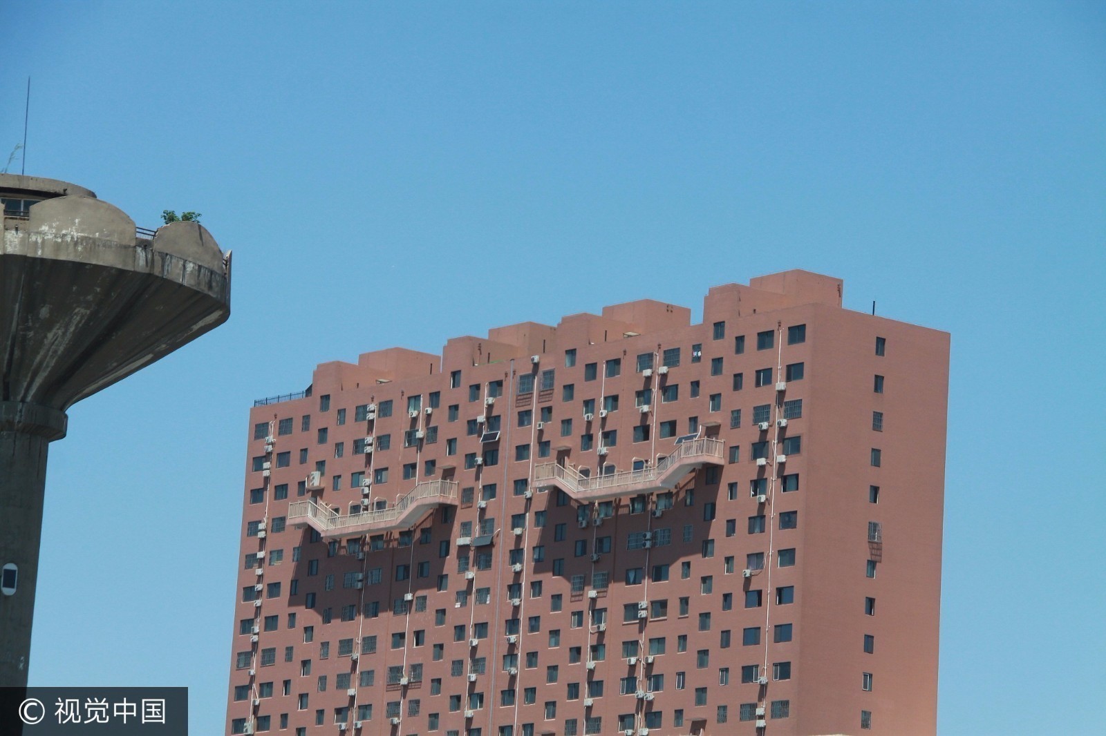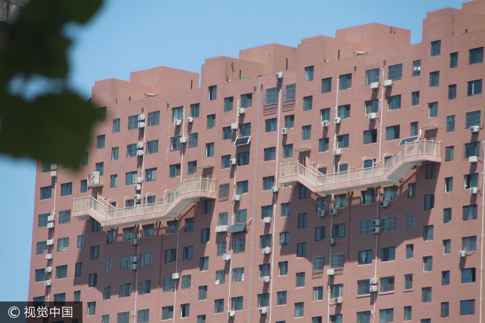 2017年7月10日,在山東濟南北園大街上,一幢大樓四個樓梯半懸在50米高的空中,令不少路人看到后直呼心驚膽顫,也不敢走這種樓梯。 2017年7月10日,在山東濟南北園大街上,一幢大樓