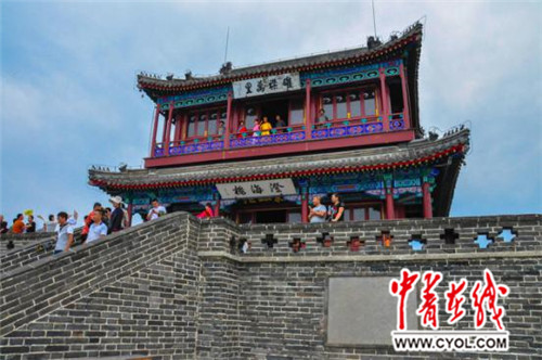 “兩京鎖鑰無雙地,萬里長城第一關(guān)。”登上具有“天下第一關(guān)”美譽的山海關(guān)城樓,既可眺望連海蒼山,又能感受古代中國的先進的軍事文化。它是明代萬里長城上迄今為止唯一保存完整的軍事城防體系,由關(guān)城、東西羅城、南北翼城及衛(wèi)城、哨城等組成。這里匯集了大江南北、關(guān)內(nèi)關(guān)外的多種風俗和文化,為世人打造一個彰顯歷史、富有韻味和游客參與的明清文化旅游景區(qū)。采訪團的記者們被雄偉壯麗的山海關(guān)景色深深吸引,紛紛拍照留念。