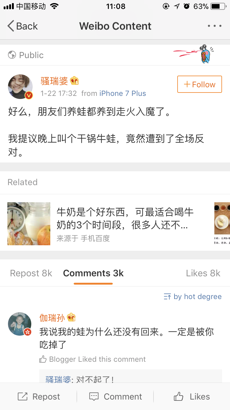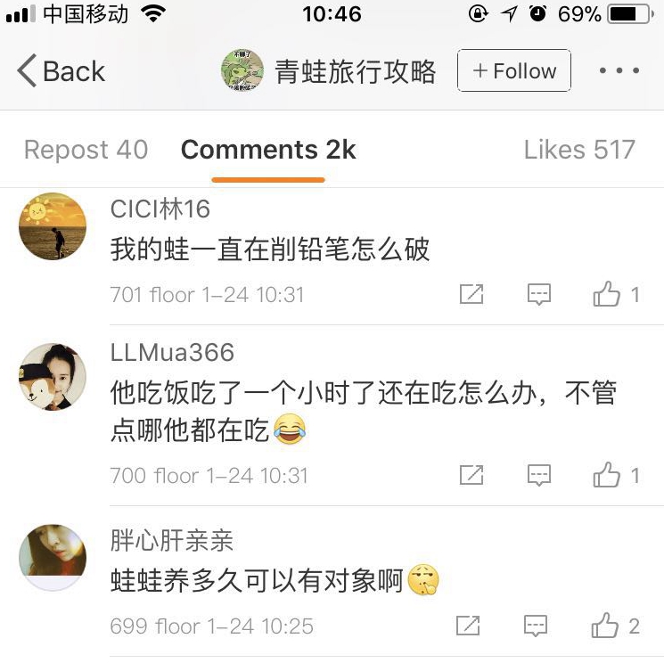 大家都親切地喊小青蛙:“呱兒子”“崽崽”, 稱自己為老父親、老母親, 分享小青蛙寄回的明信片,交流養(yǎng)蛙心得…… 甚至有土豪包了世博大屏幕, 放上自己“呱兒子”的大特寫: