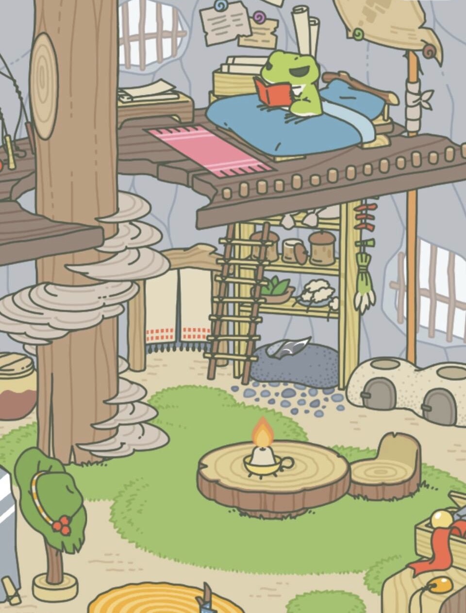 這只萌萌的小青蛙,是游戲“旅行青蛙”的主角。 在這個(gè)不需要什么操作和精力的小游戲里, 你只需要給你的青蛙取個(gè)名字; 收割庭院里的三葉草并換取青蛙旅行的干糧和其他物資; 招呼一下來(lái)家里做客的小伙伴。