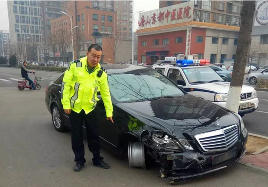 唐山:瘋狂奔馳連撞4車爆胎 逃逸磨平輪轂