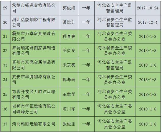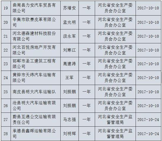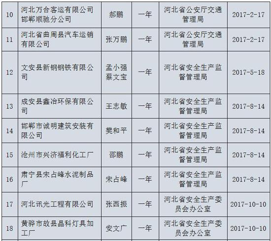 根據(jù)國家安全監(jiān)管總局《對安全生產(chǎn)領(lǐng)域失信行為開展聯(lián)合懲戒的實施辦法》和《河北省生產(chǎn)經(jīng)營單位安全生產(chǎn)不良記錄黑名單管理暫行辦法》的規(guī)定,3月23日,河北省安全生產(chǎn)委員會
