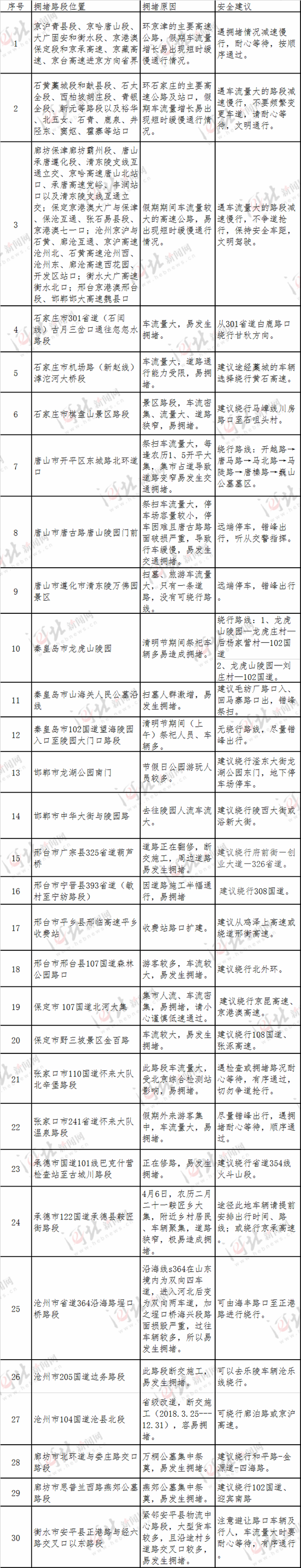 清明假期將至,河北省交管局根據(jù)近期全省道路交通安全形勢研判,匯總了清明假期期間全省30處事故多發(fā)和30處易擁堵路段,提醒廣大駕駛人合理安排出行,提前掌握路況,謹慎守法駕