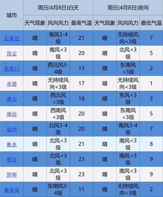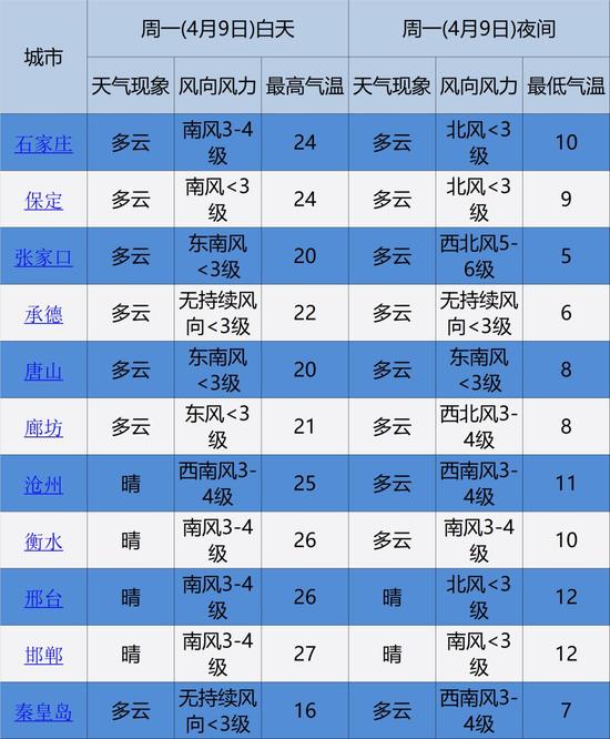 明天白天到夜間,全省晴間多云。9日白天到夜間,壩上地區(qū)晴轉陰,其他地區(qū)晴轉多云。