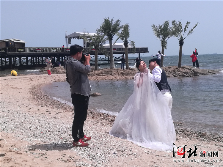 4月30日,一對新人在碧螺塔酒吧公園 拍攝 婚紗照片。 當(dāng)日,碧螺塔酒吧公園吸引了近百對新人前來拍攝婚紗照片。秦皇島市利用優(yōu)美的自然風(fēng)光以及豐富的山海河湖等旅游資源,完善