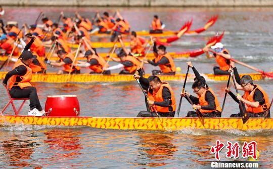 中新網(wǎng)秦皇島6月15日電 (記者 肖光明 王天譯)端午臨近,15日上午,河北省秦皇島市第七屆龍舟賽在海港區(qū)開(kāi)賽,參賽的45支隊(duì)伍在秦皇島大湯河競(jìng)逐了200米直道賽和400米混合賽的冠軍,激烈地角逐和此起彼伏的加油歡呼聲,給眾多市民和游客帶來(lái)了濃濃的節(jié)日喜慶。 ![]()