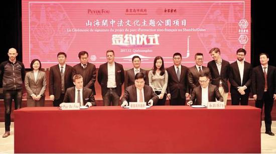 日前,秦皇島山海關中法文化主題公園項目簽署合作框架協(xié)議。法國Puy Du Fou董事局主席尼古拉斯⋅德⋅威廉,浙江永昌樂地旅游發(fā)展有限公司董事長趙勇強,秦皇島市委書記孟祥偉,市委副書記、市長張瑞書出席簽約儀式。三方經(jīng)過前期溝通,商定在山海關籌建法國Puy Du Fou主題樂園項目。