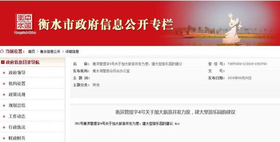 近日,衡水市濱湖新區(qū)管委會對政協(xié)衡水市第六屆委員會第二次會議第351號提案《加大旅游開發(fā)力度,建大型游樂園的建議》進行了答復,其中提到: