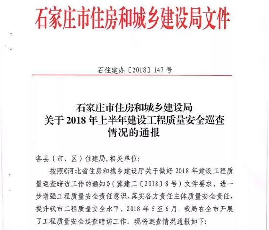 近日,石家莊市住房和城鄉(xiāng)建設(shè)局網(wǎng)站發(fā)布《關(guān)于2018年上半年建設(shè)工程質(zhì)量安全巡查情況的通報》,2018年5至6月,該局在全市 進(jìn)行 工程質(zhì)量安全巡查暗訪工作,對 施工現(xiàn)場質(zhì)量安全、