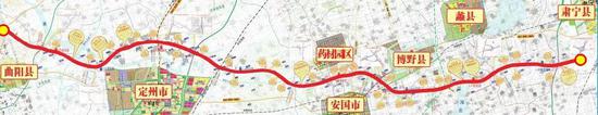 項目一期工程起自保定市曲陽縣境內京昆高速公路互通,與規(guī)劃的淶曲高速公路順接,終于滄州市肅寧縣境內大廣高速公路互通,全長92.171公里,線路途經(jīng)曲陽縣、唐縣、定州市、安國市、博野縣、蠡縣、肅寧縣7個縣市。
