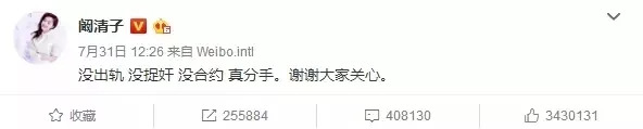感情本是私人的事情,不管明星們到底是不是和平分手,沒必要廣而告之。但作為公眾人物出于對粉絲負責的態(tài)度,通知一聲;分手好聚好散,不撕不罵,也不失為一種成熟的感情處理方式!