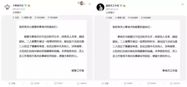 后是楊紫&秦俊杰:分手是兩個人的決定,無關他人。