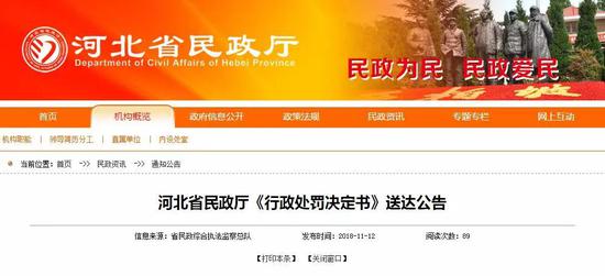 河北省民政廳《行政處罰決定書》送達(dá)公告