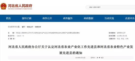 最新消息!為發(fā)揮典型示范帶動作用,鼓勵和調(diào)動各地發(fā)展農(nóng)業(yè)產(chǎn)業(yè)化和特色產(chǎn)業(yè)的積極性,經(jīng)省政府研究,認定隆堯縣等10個縣(市)為河北省農(nóng)業(yè)產(chǎn)業(yè)化工作先進縣,認定懷來縣等