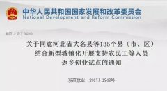 最新好消息!國家發(fā)展改革委等10部委近日聯(lián)合發(fā)布通知,經(jīng)評(píng)審,同意包括我省大名縣、臨城縣、陽原縣、肅寧縣、寬城滿族自治縣在內(nèi)的全國135個(gè)縣為第三批結(jié)合新型城鎮(zhèn)化開展支...
