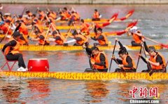 秦皇島大湯河龍舟賽現(xiàn)場 曹建雄 攝 中新網(wǎng)秦皇島6月15日電 (記者 肖光明 王天譯)端午臨近,15日上午,河北省秦皇島市第七屆龍舟賽在海港區(qū)開賽,參賽的45支隊(duì)伍在秦皇島大湯河競逐...